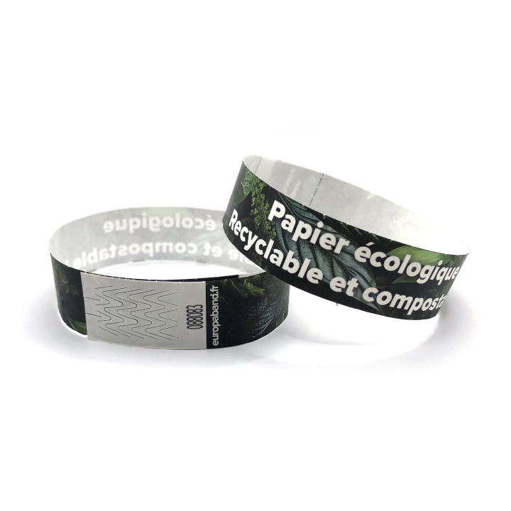 Europaband provides an innovative solution for sustainable events with our eco-friendly paper wristbands. Designed to be durable, recyclable, and biodegradable, these wristbands showcase our dedication to environmentally conscious solutions without compromising on quality. Made from sturdy paper, they serve as an eco-conscious alternative to Tyvek wristbands, while maintaining their essential functionality for event participant identification.